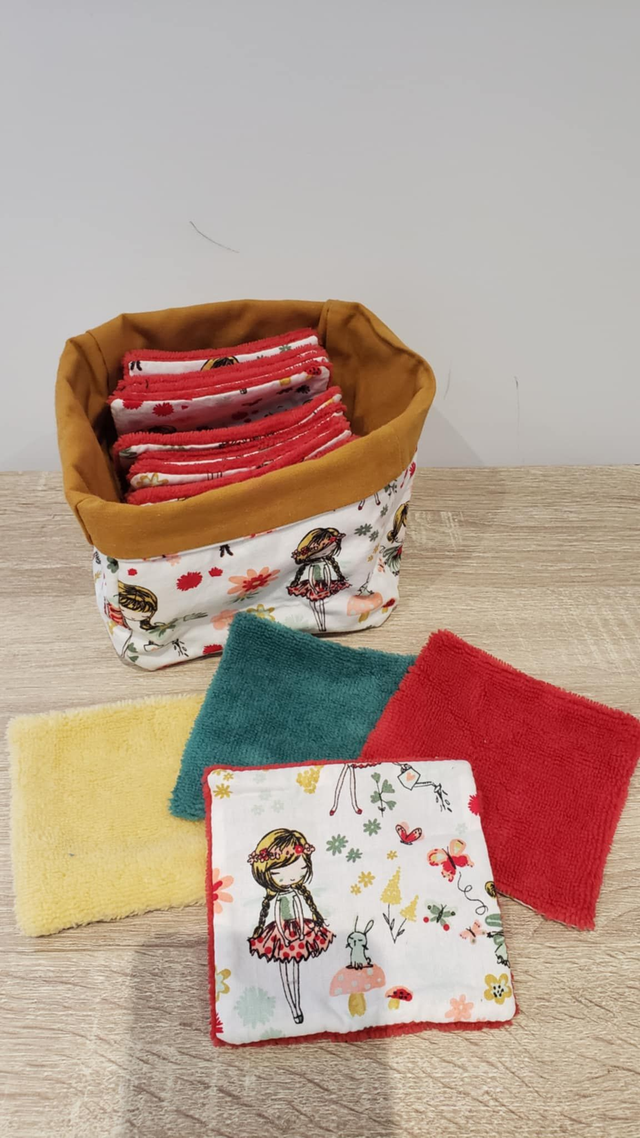 Composer vous-même votre panier avec le nombre de lingettes lavables que vous souhaitez, confectionnées en coton, éponge de bambou, idéales pour le démaquillage, le nettoyage du visage ou la toilette de bébé.